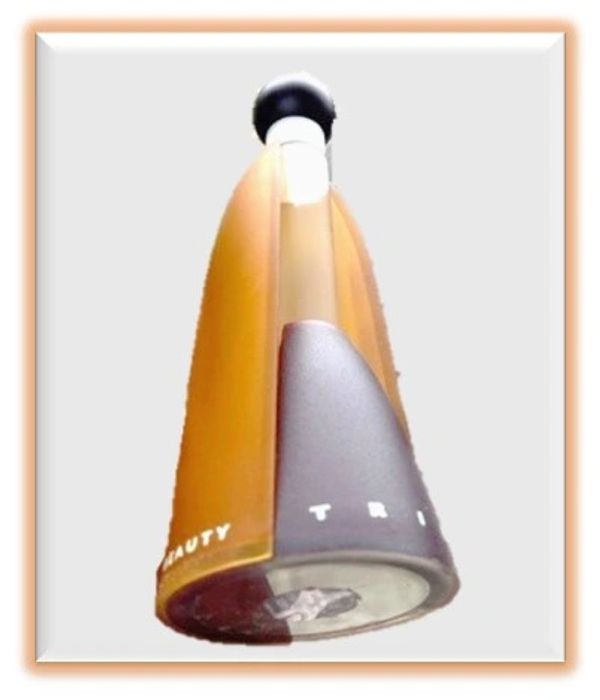 The bottle is a unique combination of molded plastic with a glass insert to preserve the fragrance. The outer carton is made from recycled cardboard with color and design to complement the entire package.